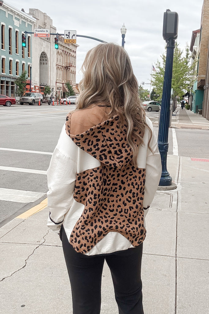 Unleash your wild side with the Kylee Leopard Jacket. This lightweight ivory jacket boasts a bold leopard print hood and star detailing on the front and back. With front slash pockets and black trim on the sleeves and hem, you'll be ready for any adventure.