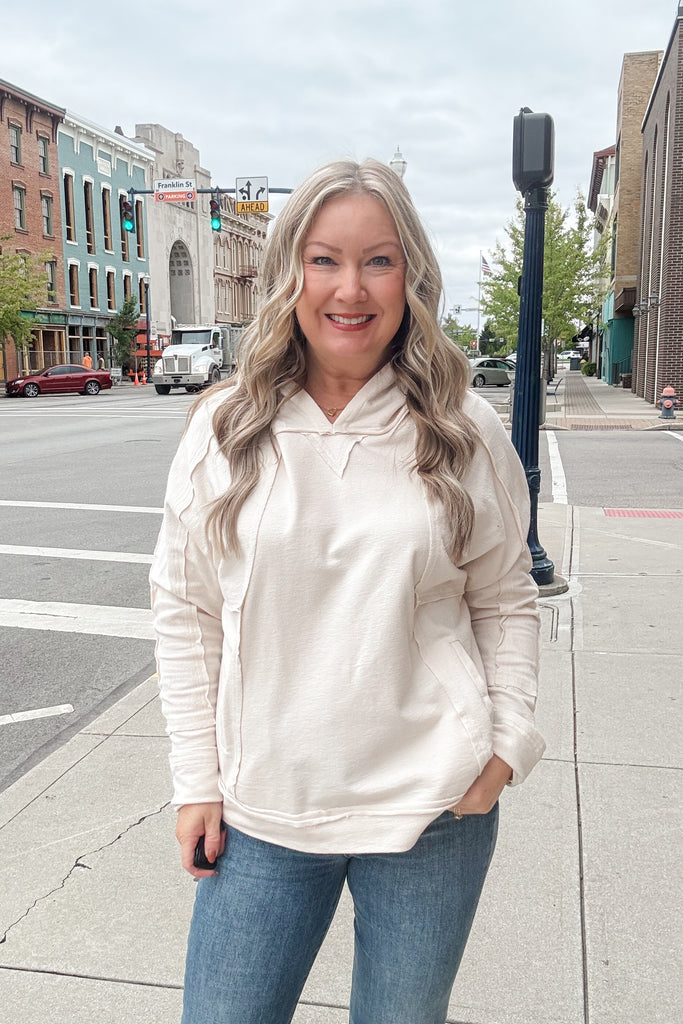 The Birdie pullover features a comfy hood and two handy side pockets for your essentials. Its layered material design adds a fun twist to a natural color, making it perfect for a sophisticated yet playful casual look. Perfect for everyday adventures with a touch of charm!