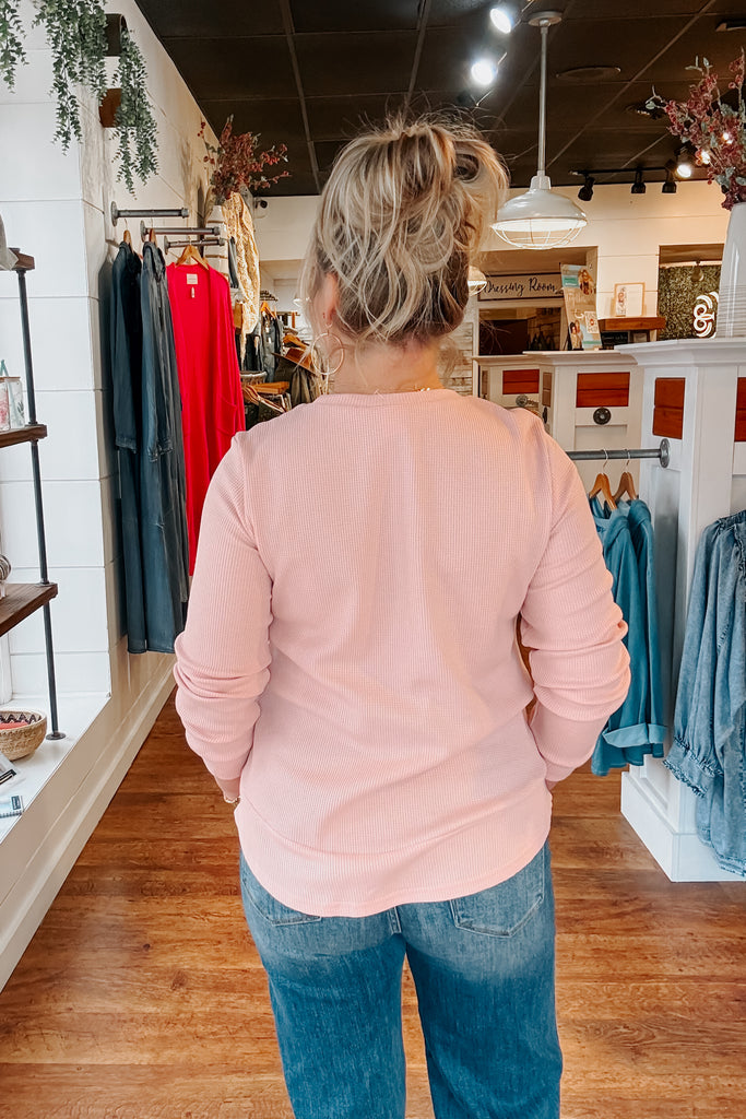 Alice Waffle Knit Pullover - Pink