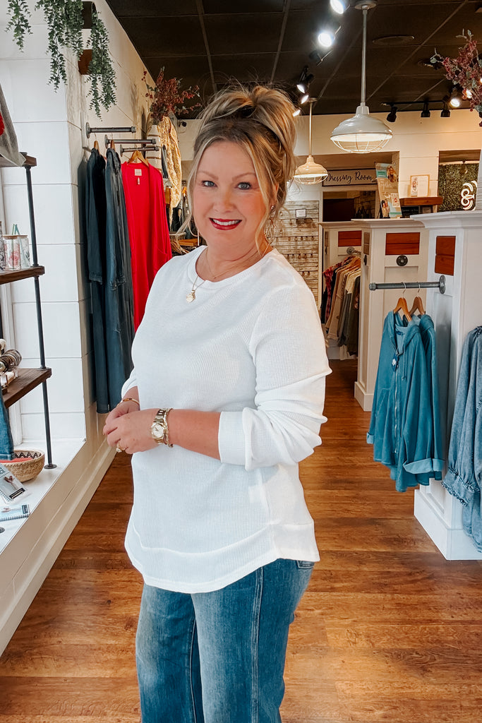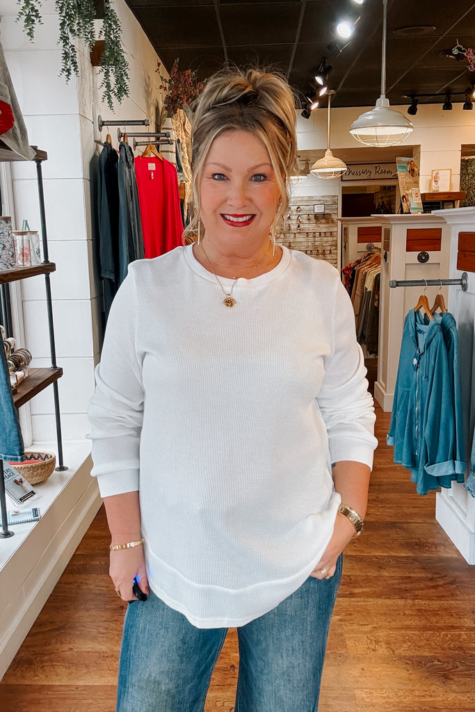 Stay warm and stylish with the Alice Waffle Knit Pullover! This comfy casual basic features a waffle knit design and details like a round neckline and hem that add just the right amount of flair. Dress it up or down and easily layer it for any occasion. (Wardrobe must-have!)